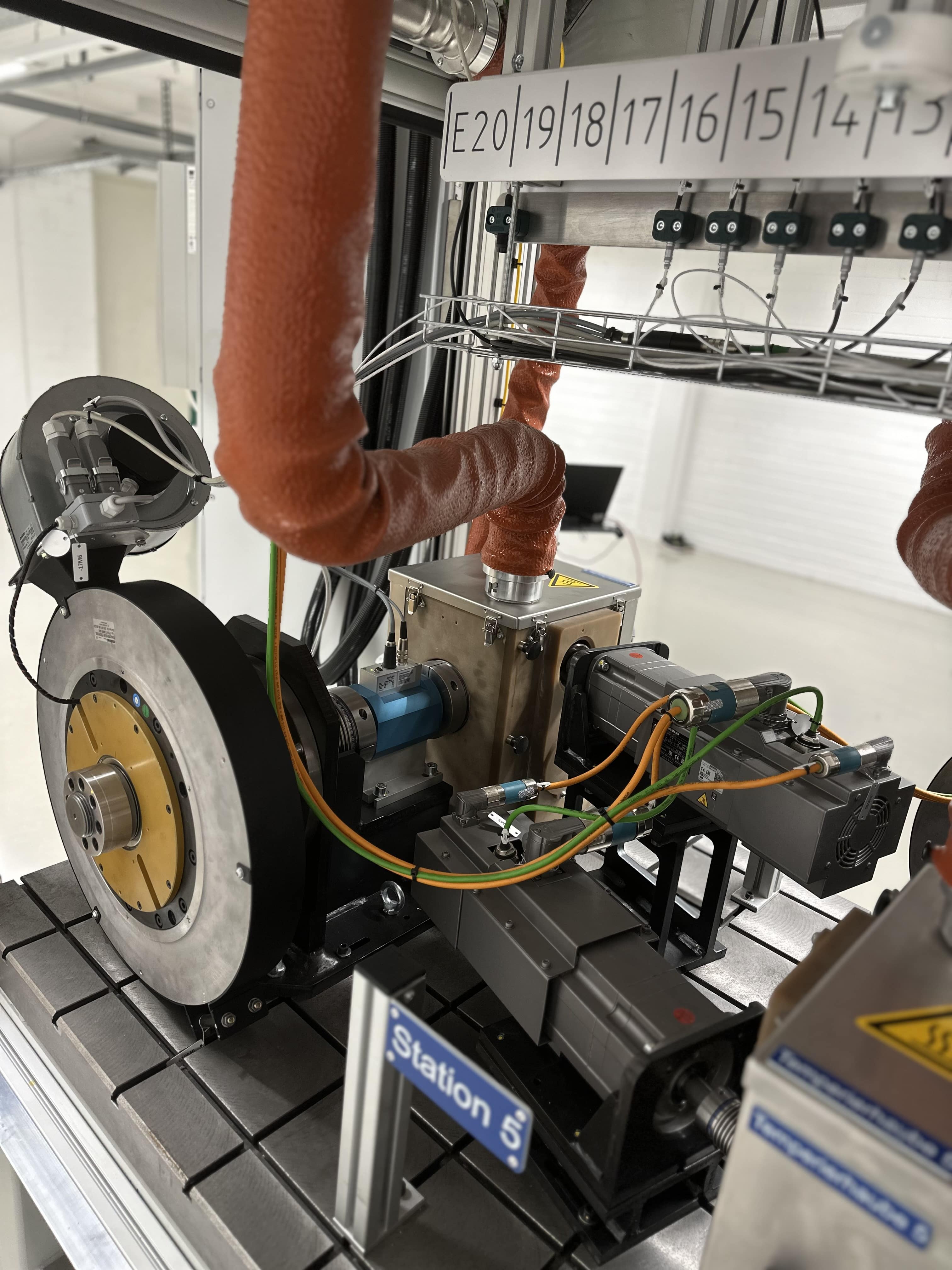 Der Getriebeprüfstand ist eine hoch entwickelte Einrichtung für Dauerlaufprüfungen, die darauf spezialisiert ist, Getriebe hinsichtlich Verschleiß und Lebensdauer in einem simulierten Betriebsumfeld zu prüfen. Mit diesem Prüfstand ist unser Kunde in der Lage, den gesamten Produktzyklus eines Getriebes präzise und effektiv innerhalb eines Zeitraums von etwa 1000 Stunden zu raffen. Die Maschine ist so konzipiert, dass gleichzeitig bis zu 6 Getriebe getestet werden können.