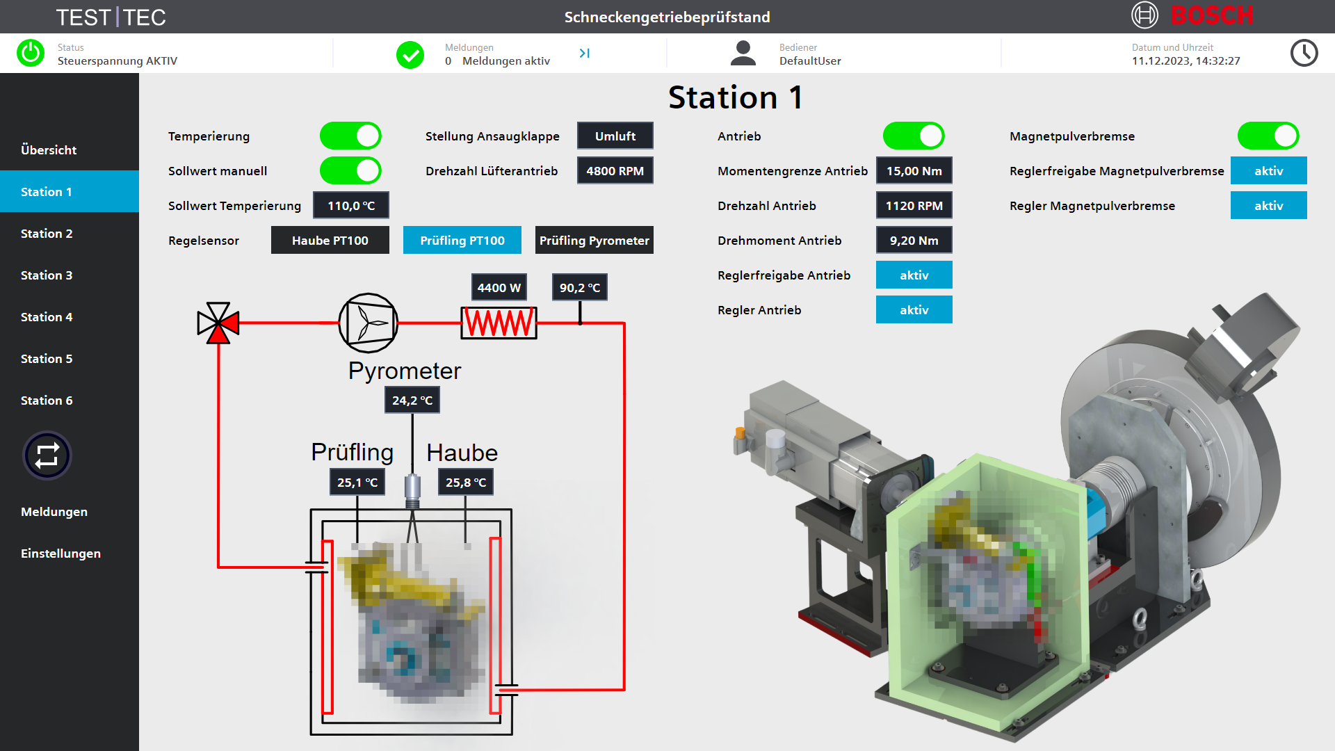 Zur Simulation realistischer Betriebsbedingungen ist das Getriebe zusätzlich innerhalb einer Temperierhaube situiert. Dadurch wird nicht nur eine präzise mechanische Belastung, sondern auf Wunsch auch eine gezielte thermische Belastung dargestellt werden.